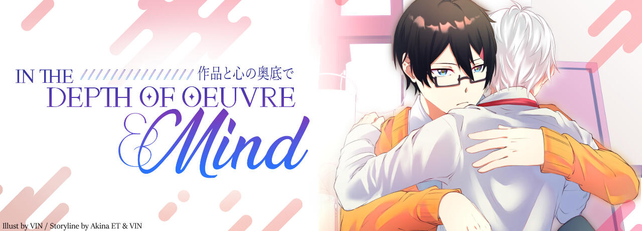 Kazu, the gifted and charming senpai, and Saichi, the timid kouhai, find themselves entangled in the vibrant world of art within their high school's art club as their shared passion for creativity brings them closer. Saichi possesses immense potential as an artist, however, his confidence wavers when it comes to fully expressing himself in his work. Due to his artistic block, the art piece always looked as if it was restrained by an invisible force. Saichi has a hard time pinpointing the root cause. But there’s one person who captivates him—the expressive Kazu. Through Kazu’s art pieces, Saichi had a glimpse of a world beyond his limitations. Looking at it urging Saichi to persevere in his pursuit of artistic excellence. Kazu, with his unwavering love for art, becomes both mentor and confidant. He recognizes Saichi’s struggle and vows to help him unlock his fullest potential.As they spend more time together, Kazu unravels the layers of Saichi’s vulnerability. Slowly, he pieces together the fragments of Saichi’s past, understanding why the artist hesitates to express himself fully. Kazu’s admiration evolves into something deeper—a protective affection that transcends mere mentorship. He wants to shield Saichi from the shadows that threaten to engulf his creativity.“In the Depths of Oeuvre and Mind” is a tender exploration of love, art, and healing. Will Kazu be able to entangle Saichi from the obscurity he had been trapped in?
